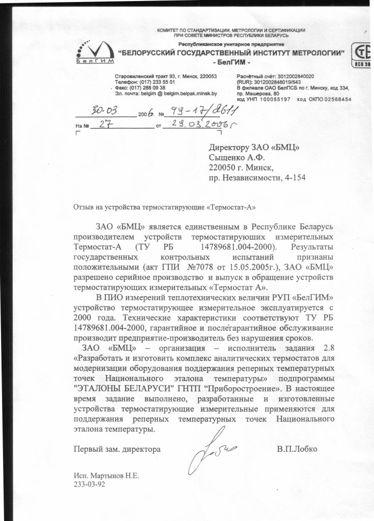 Термостат обеспечивает цифровую индикацию температуры рабочей жидкости и звуковую сигнализацию выхода на режим.