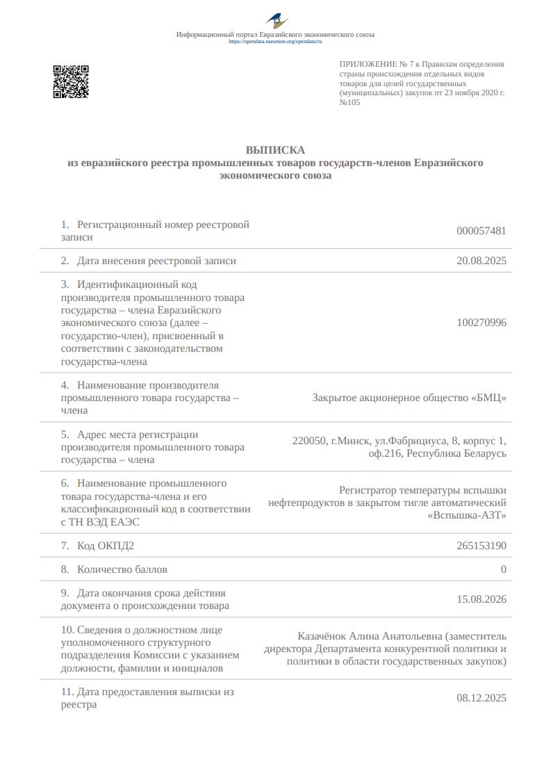Регистраторы температуры вспышки нефтепродуктов в закрытом тигле автоматические «Вспышка – АЗТ» | 1 |